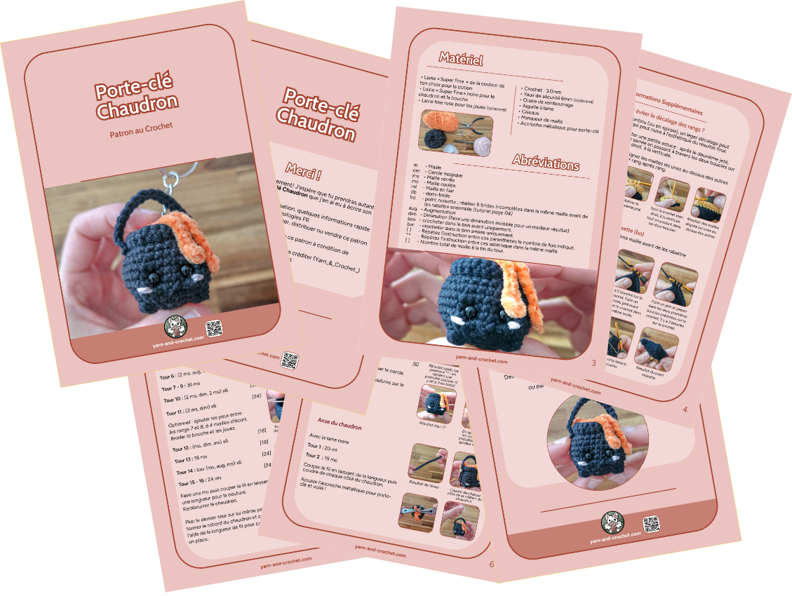 Patron Porte-clé Chaudron d’Halloween au Crochet – Tutoriel PDF (Français/Anglais)