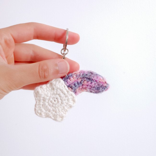Patron PDF pour créer un porte-clé inspiré des Étoile Filante au crochet.