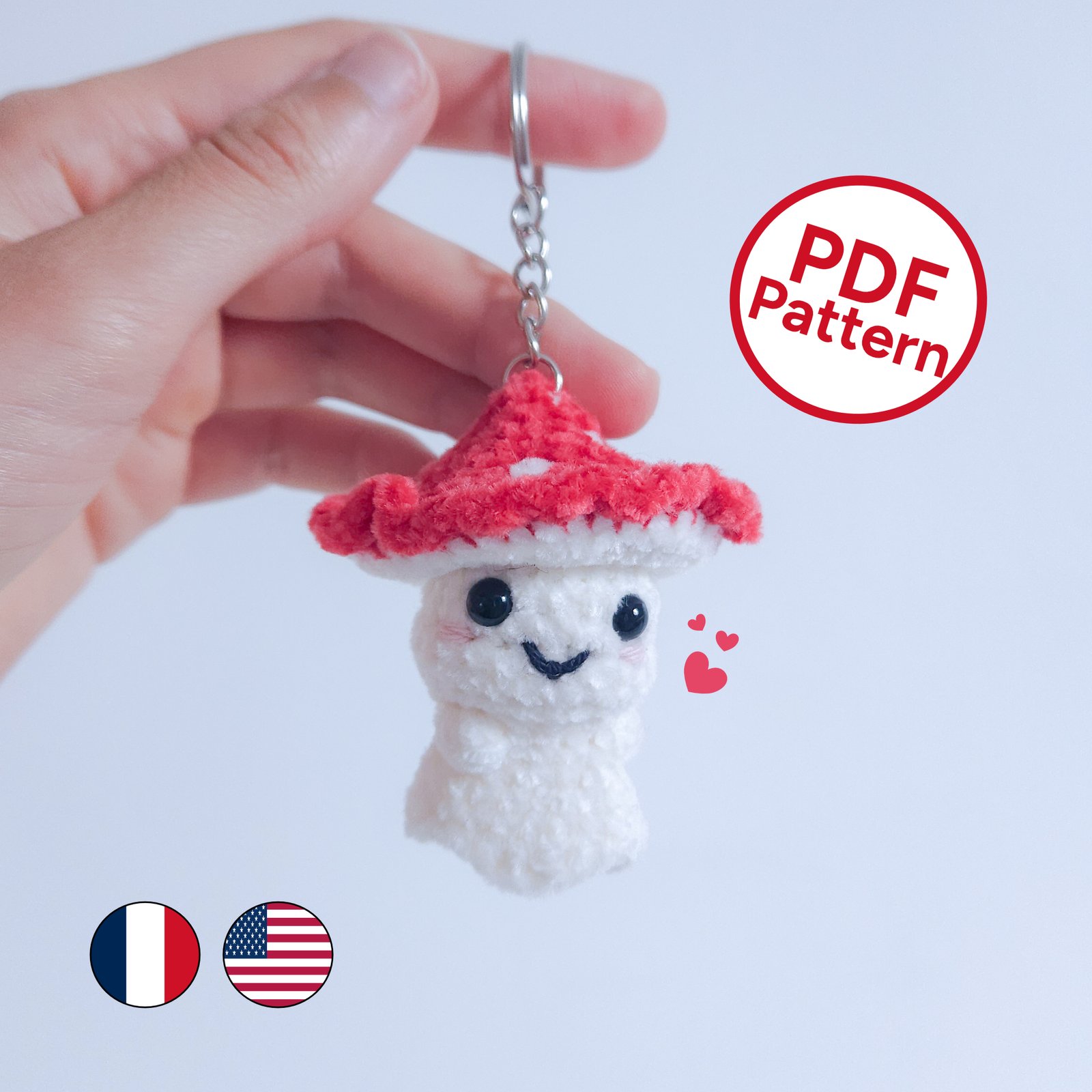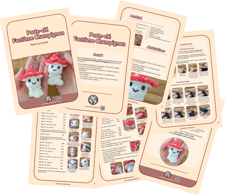 Patron Porte-clé Fantôme Champignon au Crochet – Tutoriel PDF (Français/Anglais)